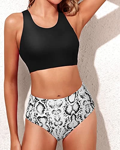 Get ready for your next beach adventure with our sporty two piece high waisted bikini set, featuring a scoop neck top and full coverage bottom with tummy control.