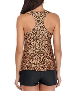 Feel confident and comfortable in this two-piece tankini swimwear, with a racerback and V-neck design, tummy control, and boy shorts for full coverage.