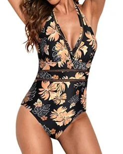 Plunge deep V neck bathing suit featuring low back backless design shows your curve perfectly. Swimwear with mesh hollow out style is sexy and fantastic, see through at waist amp up the swimming suit, making it more fashionable, flattering and alluring.