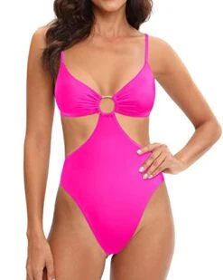 High neck style with halter straps that tie at neck and hook closure at center back, removable padded push up bra for support and shaping.Sexy plunge mesh patchwork bust area matching with cutout and strap at waist design makes the swimsuit super flattering, attractive and flirty.