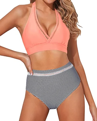 Get beach-ready in these stunning two piece swimsuits for women, featuring a high waisted bikini set with tummy control and full coverage bottoms, along with a sexy mesh design and removable padded bra for added support and shape.