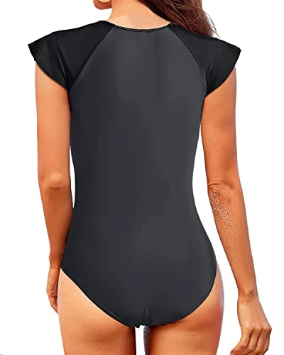 Whether you’re swimming laps or catching waves, this high-quality zip front short sleeve one piece rash guard has you covered, with a comfortable and supportive design perfect for any water sport.
