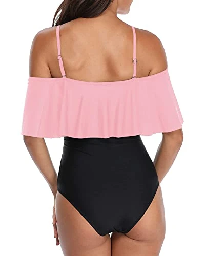 Make a statement in this off shoulder swimsuit with a flirty ruffle detail, perfect for a day at the beach or pool.