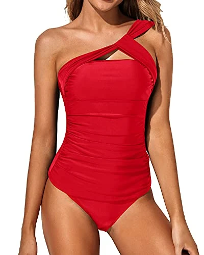 Feel confident and stylish in this two piece one shoulder tankini set, made with high-quality materials for maximum comfort and durability.